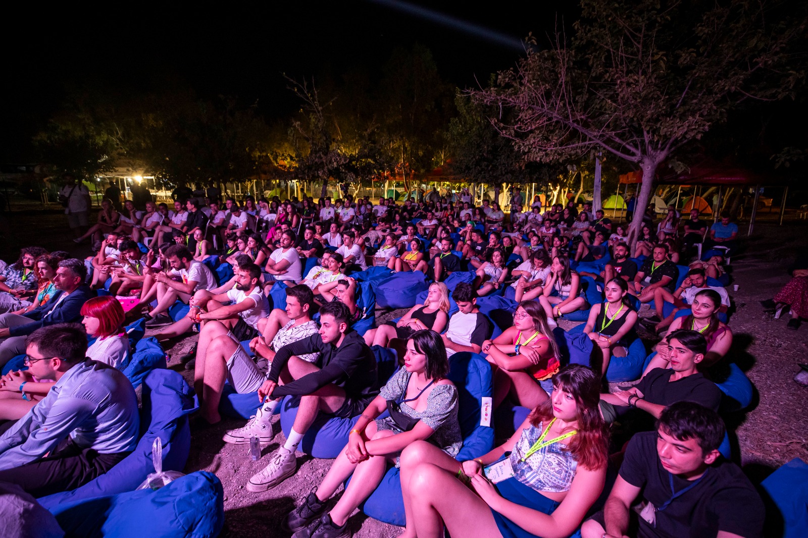 Alanda yoğun ilgiyle karşılanan Başkan Soyer, gençlerle hatıra fotoğrafı çektirdi. Kampın söyleşi bölümünde sahneye gelen Başkan Soyer, okul yıllarından, özel hayatına, hobilerinden günlük hayatına kadar pek çok soruyu yanıtladı.