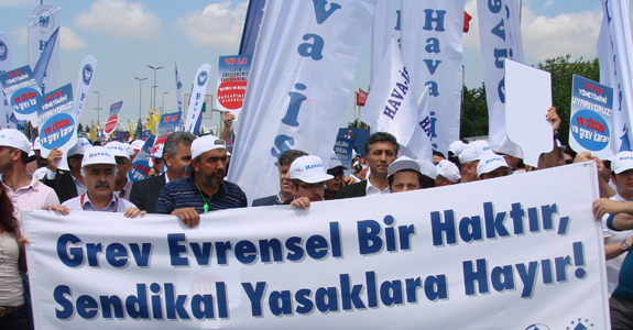 Grev hakkını ortadan kaldıran karara tepkiler 29 Mayıs 2012 sabahı yüzlerce Türk Hava Yolları çalışanını elinde pankartlarla Atatürk Havalimanı'na yığmıştı. İşe gitmeme hakkı kullanılarak gerçekleştirilen 'grev hakkı' protestosu THY yönetimi tarafından SMS bildirimi ile iş akdinin sonlandırılmasıyla karşılık bulmuştu.