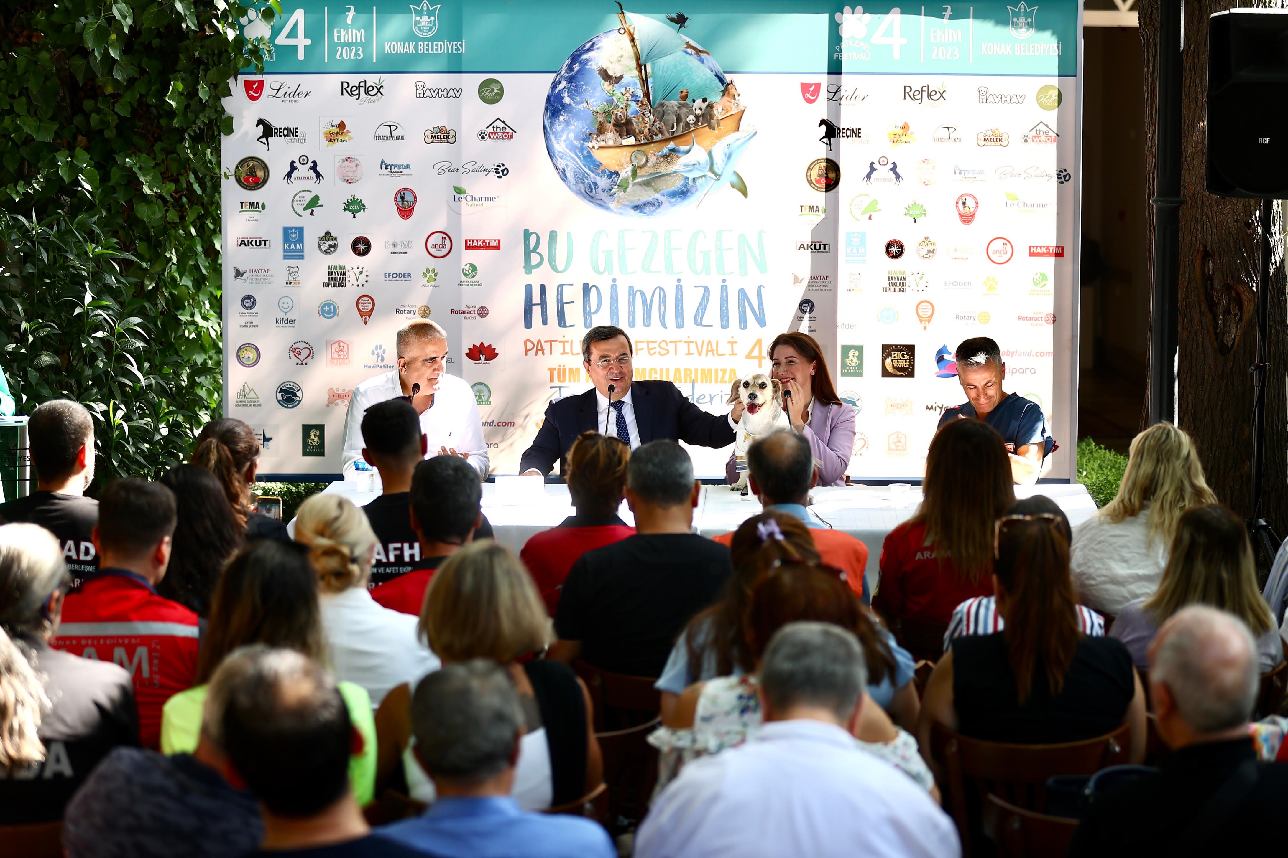 Konak Belediyesi'nin 7 Ekim'de Gündoğdu Meydanı'nda, 50 sivil toplum kuruluşunun katılımıyla, 4. kez düzenleyeceği Patilerin Festivali, Basmane Başkanlık Ofisi'nde yapılan basın toplantısıyla duyuruldu.