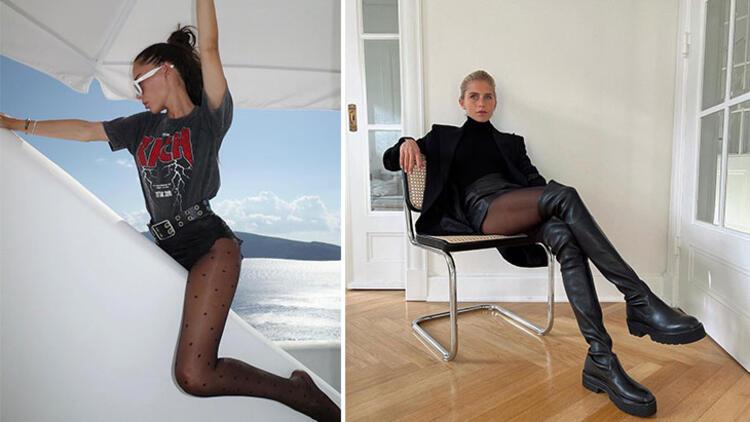 Uzun ve ince bir bacak görünümü için mini şortlar veya eteklerle yapacağınız gündelik kombinleri dize kadar uzanan çizmelerle tamamlayabilirsiniz. Baştan ayağa siyah bir görünüm, etkiyi arttırır. Nostaljik bir etki yaratmak isterseniz loaferlarla kışlık triko kombinleri en iyi tercih.