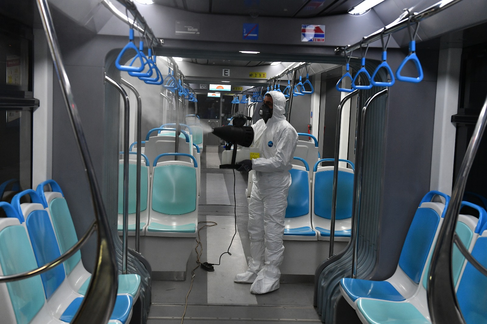ESHOT ve İZULAŞ otobüsleri, hem seferlerden sonra hem de gün sonunda garajlarda, insan ve çevre sağlığına zararı bulunmayan su bazlı temizlik ürünleri ile virüslerden ve bakterilerden arındırılıyor. Metro vagonları Fahrettin Altay İstasyonu'nda; Karşıyaka Tramvay araçları Alaybey Durağı'nda ve Konak Tramvay araçları da Halkapınar Durağı'nda, her seferden sonra ve gün sonunda en ince ayrıntısına kadar dezenfekte ediliyor. İZDENİZ'de de yolcu gemileri, araba vapurları ve iskeleler, gün içinde sürekli temizleniyor. Gün sonunda da tüm gemiler ve iskeleler, gece vardiyasında görev yapan temizlik personeli tarafından dezenfekte edilip ertesi güne hazırlanıyor. TCDD-Büyükşehir ortaklığıyla işletilen İZBAN tren setleri ile istasyonlar, her gün rutin detaylı temizliğin yanı sıra düzenli olarak dezenfekte ediliyor. Teması azaltmak için tren seti kapıları ot omatik açılıyor.