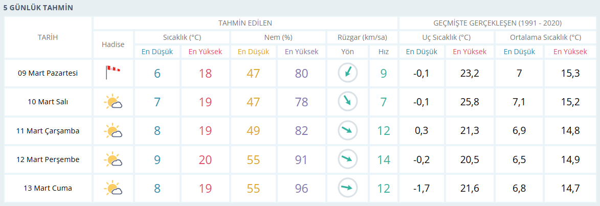 Hafta boyunca gece sıcaklıkları ortalama 8°C civarında seyretmesi bekleniyor. Gün içerisinde ise hafta boyunca ortalama hava sıcaklığının 19°C olması bekleniyor. Hava sıcaklıklarının ortalamanın üzerinde seyretmesi bekleniyor.