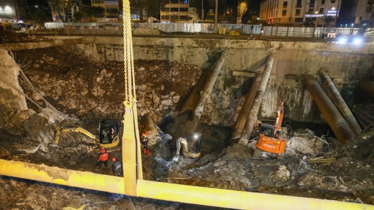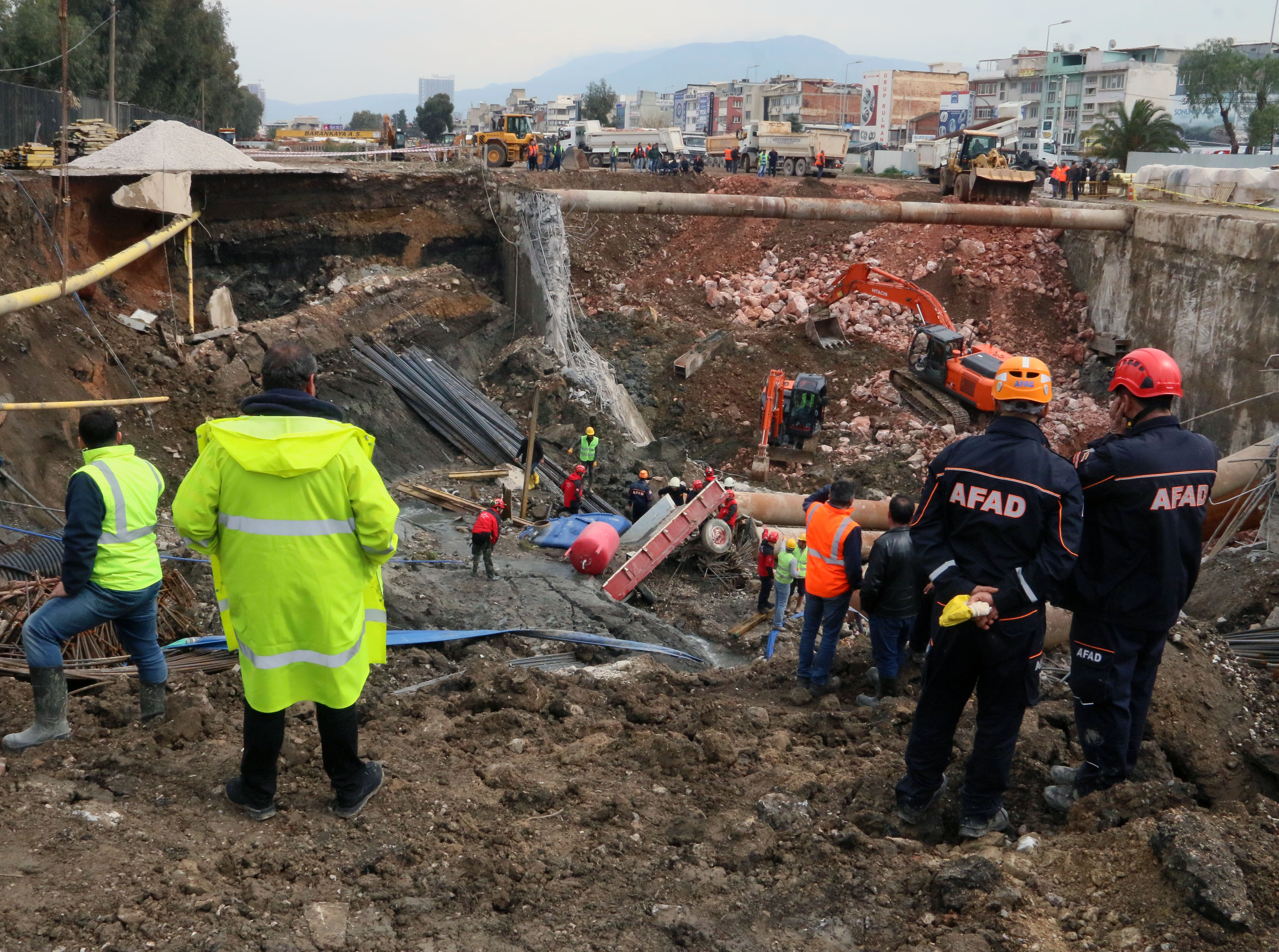 İzmir Büyükşehir Belediyesince, metro vagonları için yapılan yer altı park alanının inşaatında göçük meydana geldi. Göçük altında kaldığı tahmin edilen 2 bekçiyi arama çalışmaları gece saatlerinde de devam etti. AKS ve AFAD ekipleri iş makineleriyle 2 bekçiyi arama çalışmalarını sürüyor.