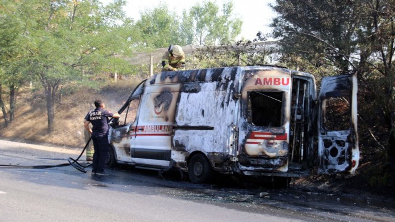 Ambulansın motor bölümünden çıkan alevler, kısa sürede tüm aracı sardı.