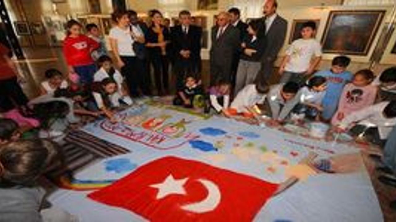 44 sanatçının eserlerinden oluşan ’“Biz Atatürk’’ün çocukları buradayız’” başlıkla karma resim sergisini de gezen İzmir Büyükşehir Belediye Başkanı Aziz Kocaoğlu, Özel Tevfik Fikret İlköğretim Okulu öğrencilerinin ’‘Atatürk ve devrimler’’ temalı resim çalışmasını da bir süre dikkatle inceledi. Ulu Önder’’in kurduğu Cumhuriyet’’i ve onun devrimlerini tasvir eden resimdeki bayrak ülkenin birlik ve bütünlüğünü, bayrağı tutan el gençleri ve öğrencileri, gökkuşağı değişkenliği ve bu değişimin sürekli devam edeceğini, güvercinler barışı ve dostluğu, mavi gökyüzü saflığı temsil ederken, Anıtkabir ölümün aksine Atatürk’’ü hala yaşayan bir varlık olarak anlatıyor.