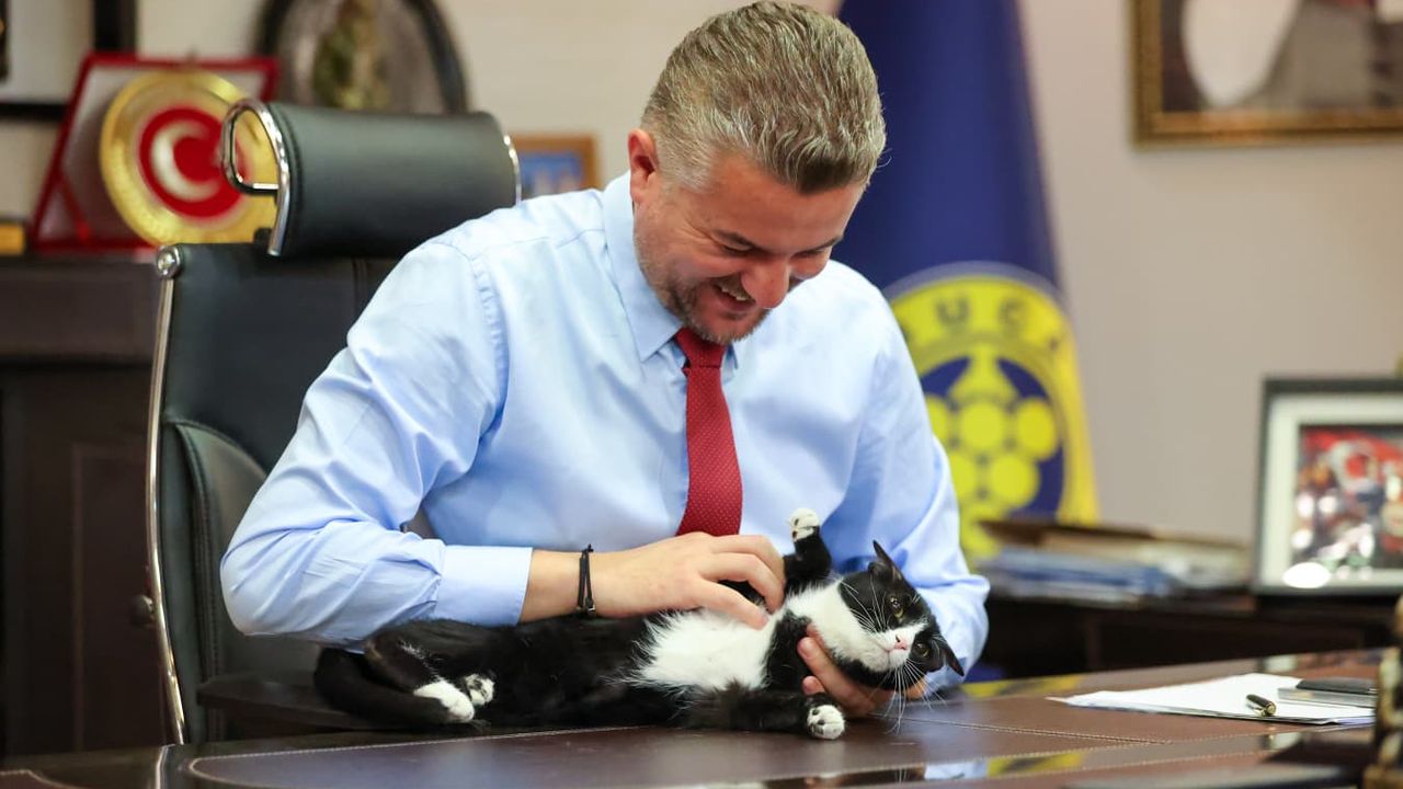 Sosyal medya hesapları üzerinden Sokak Hayvanları Rehabilitasyon Merkezi’ni ziyareti esnasında sahiplendiği ve makamında tüm gün arkadaşlık ettiği kedisi Üzüm ile birlikte olan fotoğrafını paylaşan Buca Belediye Başkanı Görkem Duman, gönderisinde şu ifadelere yer verdi: