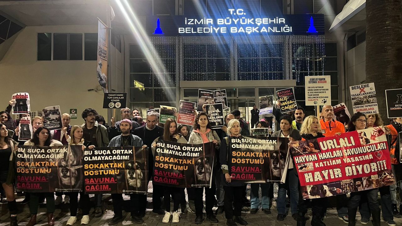 İzmir Yaşam Hakkı Savunucuları adına yapılan basın açıklamasını Avukat Bilge Berk okudu. Okunan basın açıklamasında, “İzmir Büyükşehir Belediyesi Aşık Veysel Rekreasyon Alanı’nda 8 yaşını geçmiş uysal ve kısır köpekleri toplamıştır. Bunu asla kabul etmiyoruz. Kısır ve yaşlı köpekleri alarak bu popülasyon hiçbir işe yaramayacak. Bu sorun bu tip davranışlarla çözülmeyecek. Ancak tepki toplarsınız. Ölüm yasasına uymayacağız dediler. CHP'li belediyeler madem bizim dilimizi konuşuyorsunuz neden bizimle muhatap değilsiniz. 10 yaşındaki köpeğin alnından vurdular. Aşık Veysel’de 4 tane toplama aracı belirledi. 14 yaşındaki pamuk alnından uyuşturucu ile vuruldu. Ekip araçlarında veteriner hekim kontrolü olmadan vurdular. 14 yaşındaki hayvan için dozu kim ayarlıyor. Bugün burada pamuk için toplanabilirdik. Etik dışı yasa bile süre tanırken bu hayvan düşmanlığı neden? Seçim zamanı geldiğinde bizden sakın oy istemeyin. İzmir Büyükşehir’e sesleniyoruz. Hayvan Naziciliği yapma, işini yap. Belediye veterinerlikleri böyle bir şey yapmazsak hapse gireriz diyorlar. Kanunda böyle bir şey yok. Karşımızdakiler belediye değil herhalde hukukçu. Hayvanlara verilen parayı çarçur etmeyeceksin diyor. Hapis cezası nereden çıkıyor? Bugün buraya gelen herkese teşekkürler” ifadeleri yer aldı.