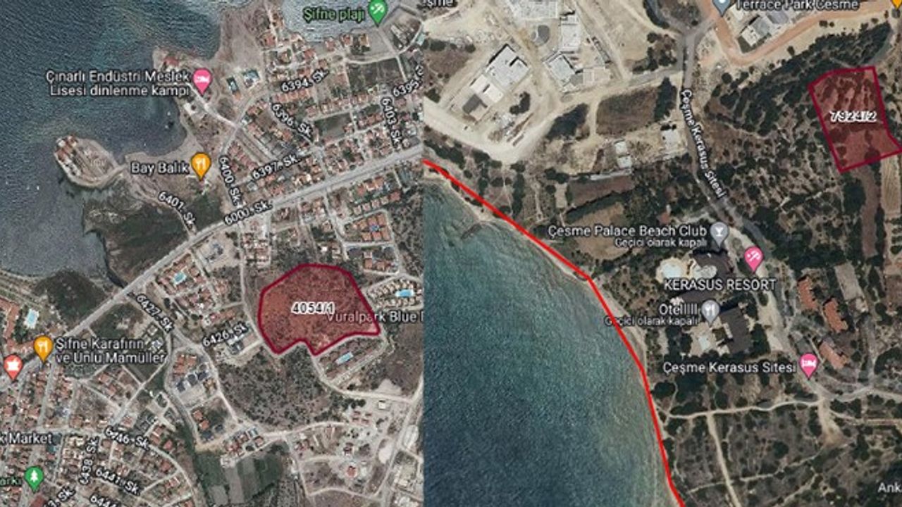Satışa çıkarılan taşınmazlar arasında İzmir'den de araziler bulunuyor. Kentin Çeşme ilçesindeki 2 değerli kamu arazisi alınan kararla birlikte satış için vitrine çıkarıldı.