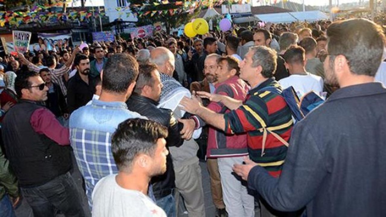 Kürkçü konuşurken 7 kişilik bir grup genç, bariyerle çevrili alanda duran mitingdekilere tepki gösterdi. İki grup arasında su şişeleri, sopa ve levhalar havada uçuştu. Kürkçü, polisleri alanın güvenliğini korumaya çağırdı. Kısa süreli olayın ardından bölgedeki grup polis tarafından uzaklaştırıldı.