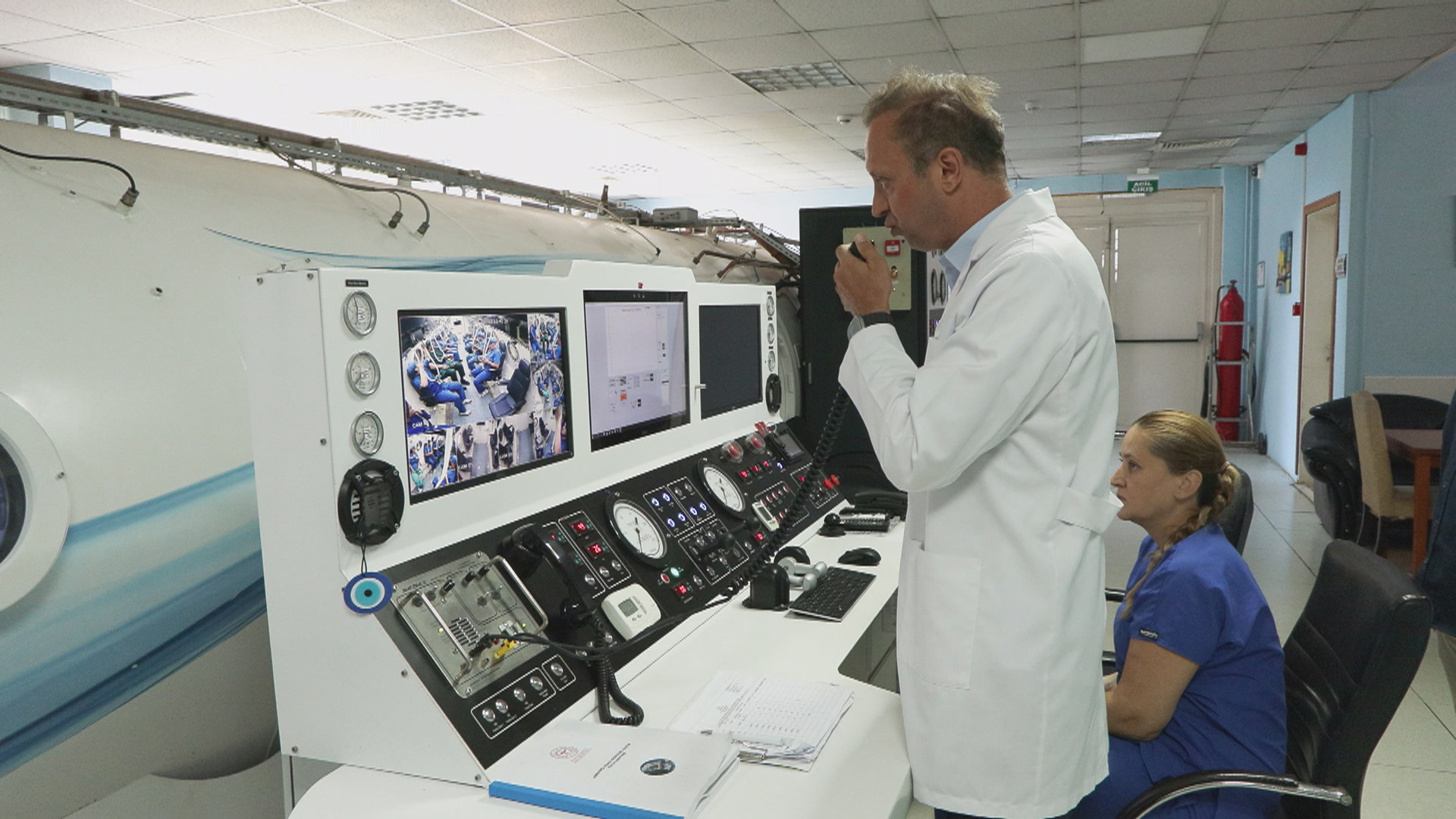 Olayın kendilerini de çok şaşırttığını kaydeden Uzman Doktor Yavuz Aslan şu bilgileri verdi: "Hastanın sol elinde büyük bir iskemik, nekrotik zeminli, yani kanlanması bozulmuş, kötü bir yara olduğunu fark ettik. Birkaç gün içerisinde ön kolunda şiddetli bir ödem vardı bu dirseğe kadar yayılıyordu. Biz özellikle bu tarz yaralarda hiperbarik oksijen tedavisini ön planda tutuyoruz, enfeksiyon tedavisine yardımcı olması açısından. Hastaya günde 1 seans olacak şekilde 2 saat süren hiperbarik oksijen tedavisini planladık. Yara pansumanlarına geçtik yaklaşık 1 hafta sonra yara debride edebileceğimiz yani temizleyebileceğimiz pozisyona geldi. Yara temizliğini yaptık nekrotik dokuları kaldırdık, tendonları açığa çıkmıştı, buraya özel kolajen maddeler koyduk. Yaklaşık 1,5-2 aylık süreçte hastanın yarası tamamen iyileşti. El fonksiyonlarını kullanabilir hale geldi. Hastanın elini ve ön kolunu ampitasyondan yani kesilmekten kurtardık. Daha sonra da el hareketlerinin tamamen yerine gelmesi için fizik tedavi bölümüne yönlendirdik"