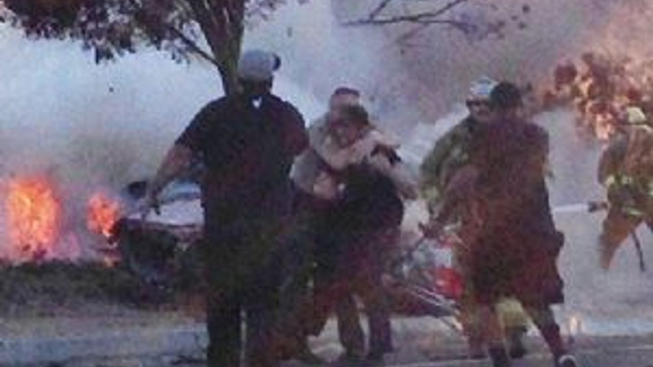 İngiliz basınından The Daily Mail'in sitesinde yer alan habere göre; yol kenarındaki bir elektrik direği ve ağaca çarpan Porsche marka araç kısa süre içinde infilak ederek, alev topuna dönüşüyor. O sırada olay yerinden geçen birçok sürücünün aracını durdurarak, otomobildekilere yardım etmek istediği görülüyor.