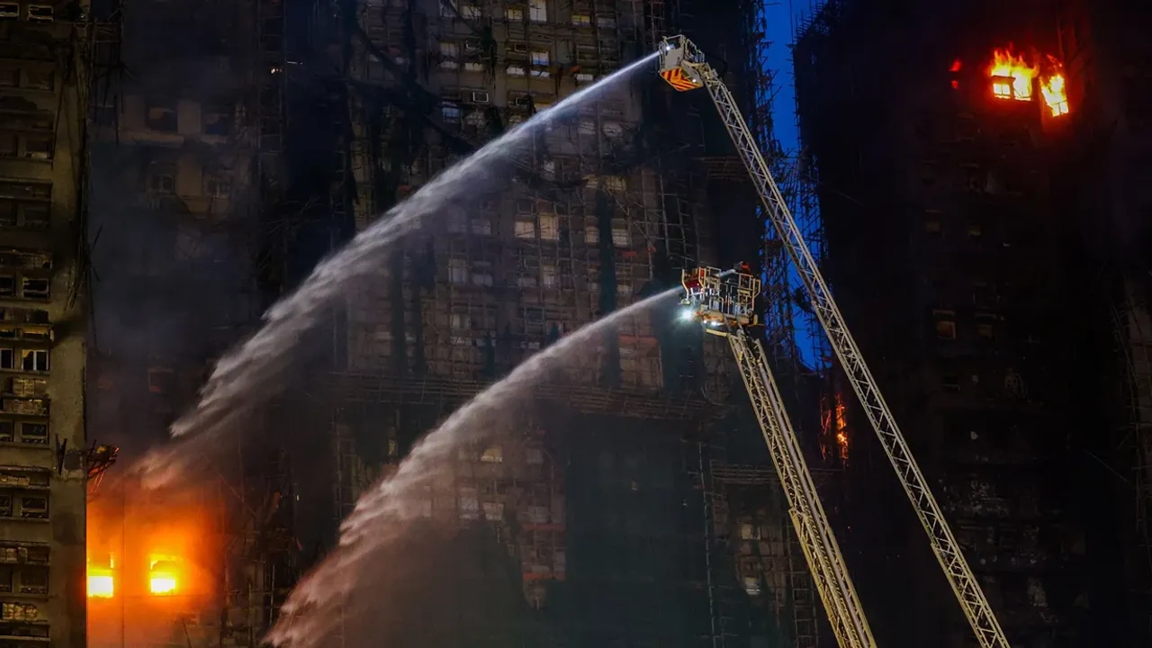 Dün öğle saatlerinde 1900'den fazla dairenin bulunduğu Wang Fuk Sitesi'nde başlayan yangın, binaların tadilatı için dış cephelerine kurulu bambu iskeleler ve yanıcı izolasyon malzemelerin tutuşmasıyla hızla yayılmıştı.
