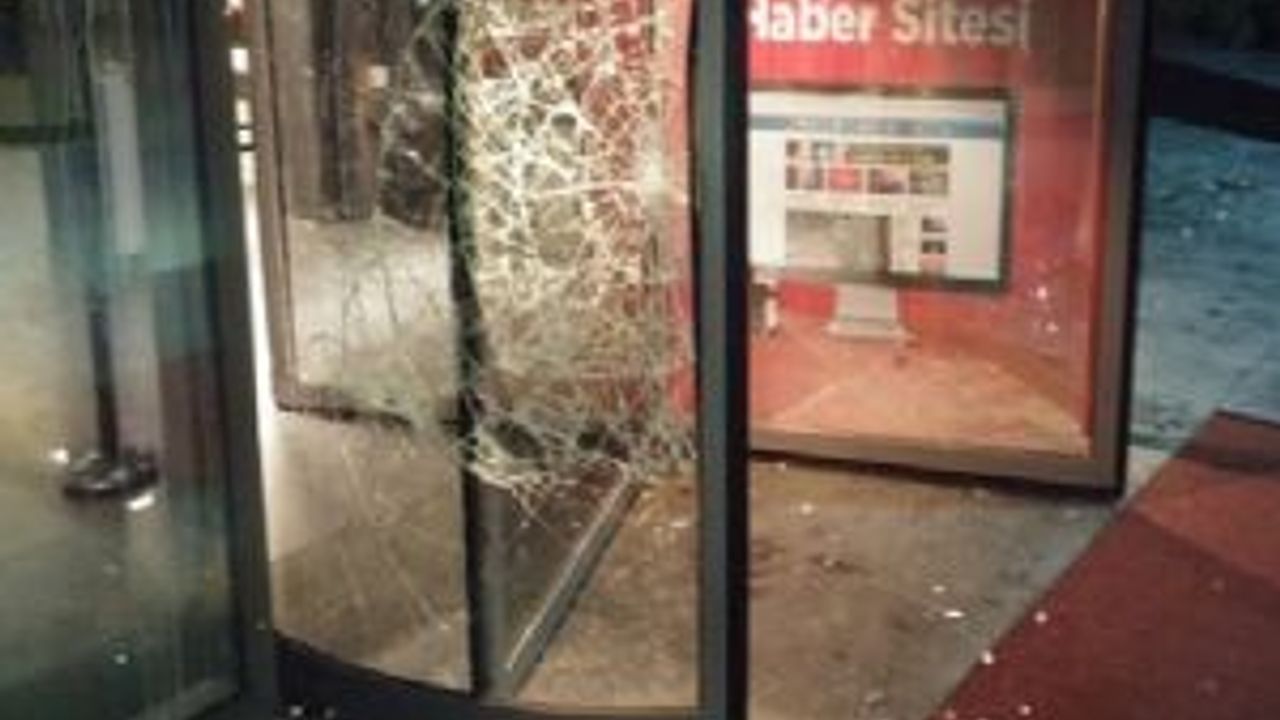 Saat 23.30 sıralarında gazete binasının önünde toplanan yaklaşık 200 kişilik grup, taş ve yumurtalarla binanın giriş kapısına saldırdı.
