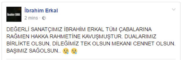 Acı haberi ünlü sanatçının sosyal medya hesaplarını yöneten ailesi böyle duyurdu. Açıklamada 'Değerli sanatçımız İbrahim Erkal tüm çabalara rağmen hakkın rahmetine kavuşmuştur' denildi.