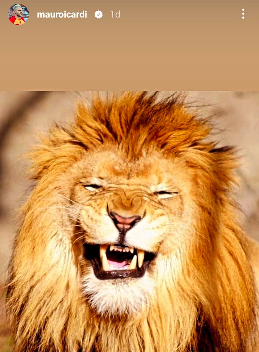 Arjantinli golcü Mauro Icardi, sosyal medya hesabından yaptığı paylaşımda gülen bir aslan fotoğrafı kullandı.