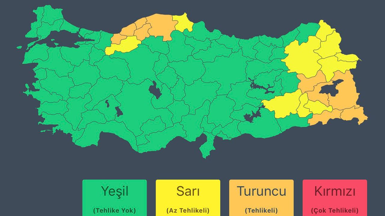 İçişleri Bakanlığı'nın sanal medya hesabından yapılan paylaşımda, Zonguldak, Düzce, Bartın, Bolu, Karabük, Kastamonu çevreleri ile Sinop’un kuzeybatısında yer yer 20 santimetrenin üzerinde yoğun kar yağışı öngörüldüğü bildirildi. Açıklamada ayrıca, Erzincan, Elazığ, Tunceli, Erzurum, Ardahan ve zamanla Iğdır’ın yüksekleri ile Ağrı, Kars ve Van’da 5-20 santimetre aralığında kuvvetli kar yağışı beklendiği; Bingöl, Bitlis, Muş, Hakkari ve Şırnak’ın kuzey ve doğu kesimlerinde ise yer yer 20 santimetrenin üzerinde yoğun kar yağışlarının görülebileceği belirtildi.