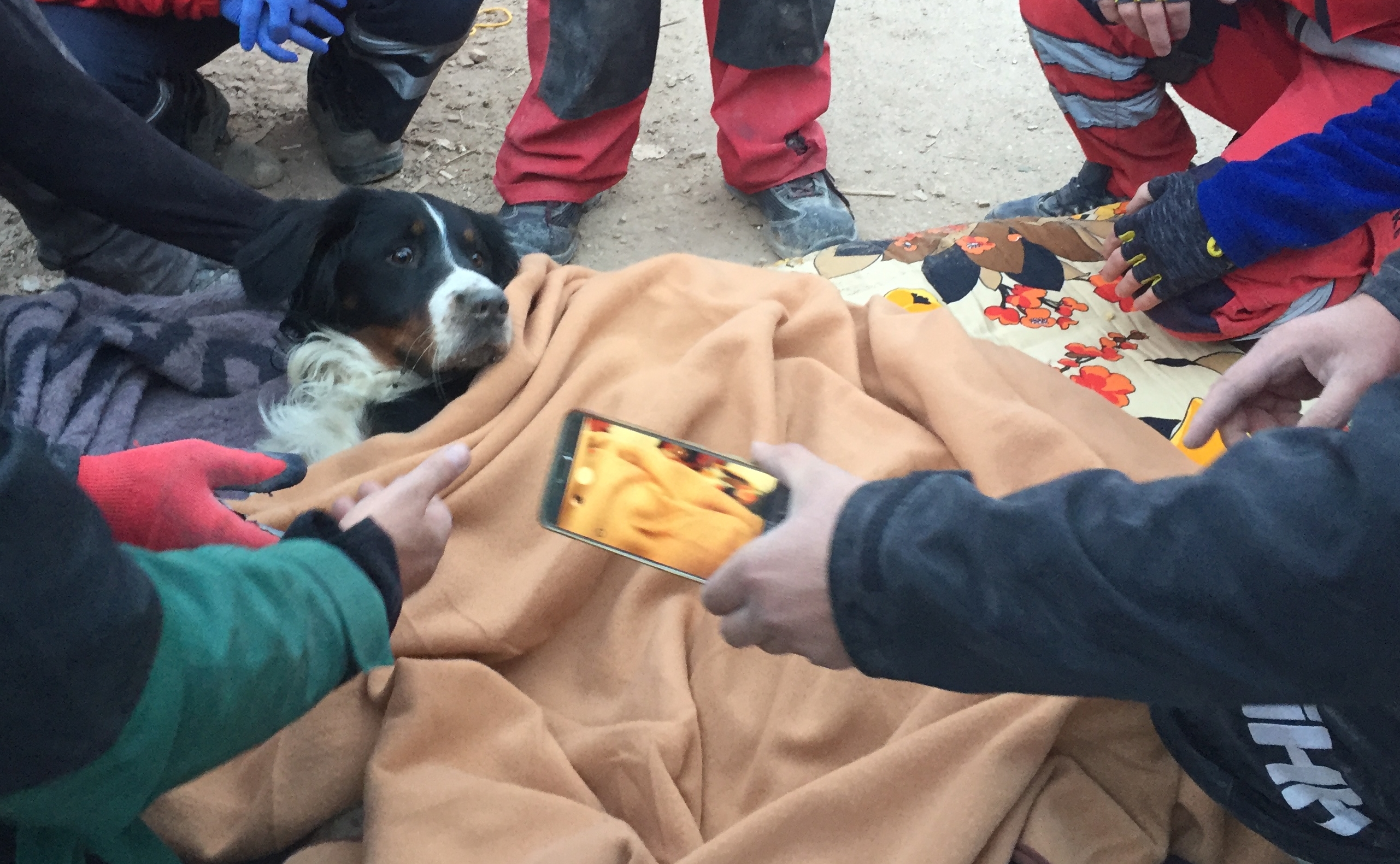 İzmir'deki depremde çöken Rıza Bey Apartmanı enkazından 'Ares' adlı köpek 65 saat sonra sağ salim çıkarıldı.