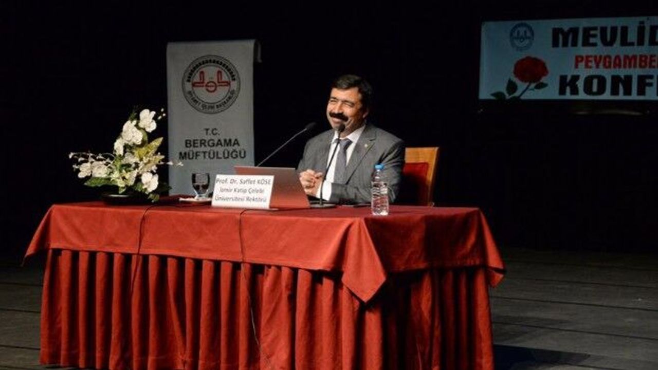 Bergama İlçe Müftülüğü'nün organize ettiği konferansa Katip Çelebi Üniversitesi Rektörü Prof. Dr. Saffet Köse konuşmacı olarak katıldı. Konferansı ilçe Kaymakamı Mahmut Kaşıkçı, Belediye Başkan Yardımcısı Aşkın Uyar ve çok sayıda vatandaş dinledi. 'Peygamberimiz ve Aile' konulu konferansa İstiklal Marşı ve Kuran-ı Kerim okunmasıyla başlandı. Programın açılış konuşmasını İlçe Müftüsü Hayrullah Yılmaz gerçekleştirdi. Ardından Diyanet İşleri Başkanlığı'nın hazırlamış olduğu Mevlid-i Nebi sinevizyonu izlendi.