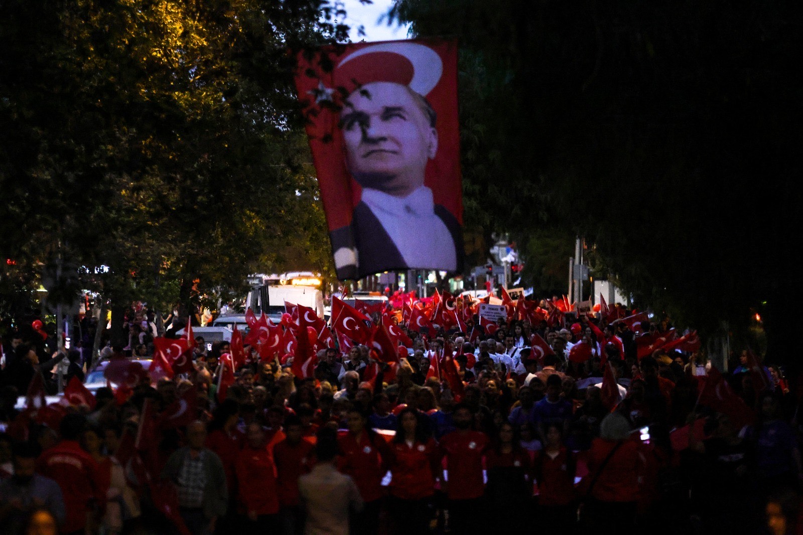 Çiğli Belediyesi’nin düzenlediği “İstiklâlden İstikbale Büyük Cumhuriyet Yürüyüşü”, Cumhuriyet’in 102. yılında büyük bir coşkuyla gerçekleşti. Cumhuriyet ve Demokrasi Parkı’ndan başlayan kortej, bando eşliğinde çalınan marşlar ve meşalelerin ışığında, eski belediye binası önündeki Atatürk Heykeli’nde son buldu.