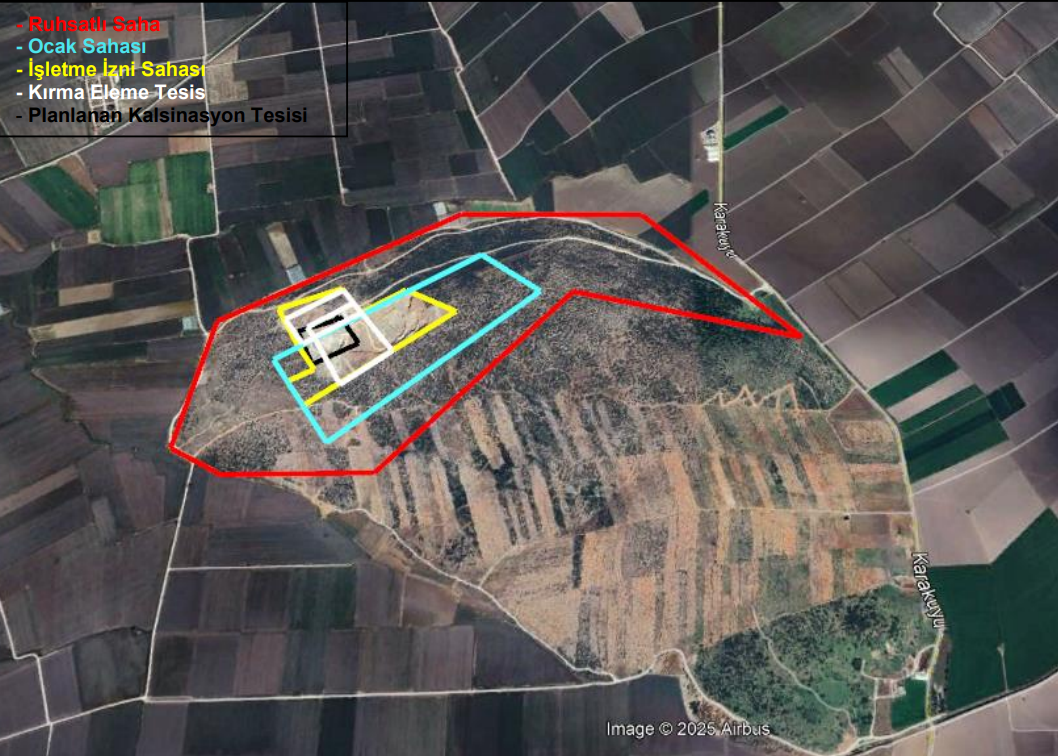 S.41134 (ER.2315559) numaralı ruhsatlı saha içerisinde dolomit madeni çıkartma işlemi gerçekleşmekte olup dolomit, kireçtaşlarından CaO 'in yerini kısmen veya tamamen MgO 'in alması ile oluşmaktadır. Bu yüzden bileşimi açısından kireçtaşları ile ilişkisi olup, yanalda ve düşeyde daima kireçtaşları ile geçişlidir. Proje kapsamında ruhsatlı saha içerisinde çıkarılan Dolomit (MgCO3)’ in kalsinasyon işlemi ile kireç üretilmesi amaçlanmaktadır. Kireç, kireçtaşının fırınlarda 950-1000 °C civarındaki sıcaklıklarda kalsine edilmesi ile elde edilmektedir