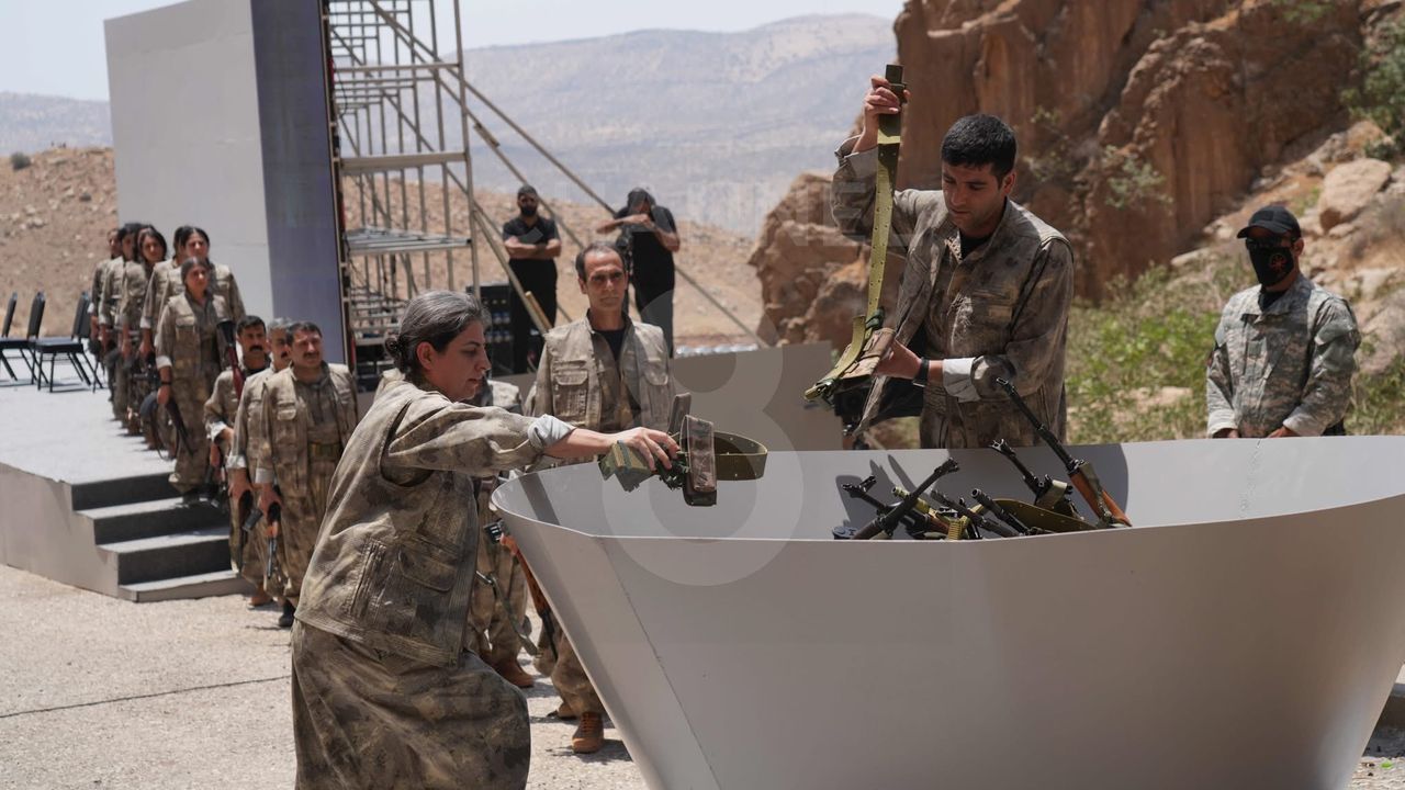 Terör örgütü PKK elebaşı Abdullah Öcalan'ın çağrısı sonrası kendisini feshetme kararı alan terör örgütü PKK, bugün Irak'ın Süleymaniye kentinde düzenlenen törenle silah bıraktı.