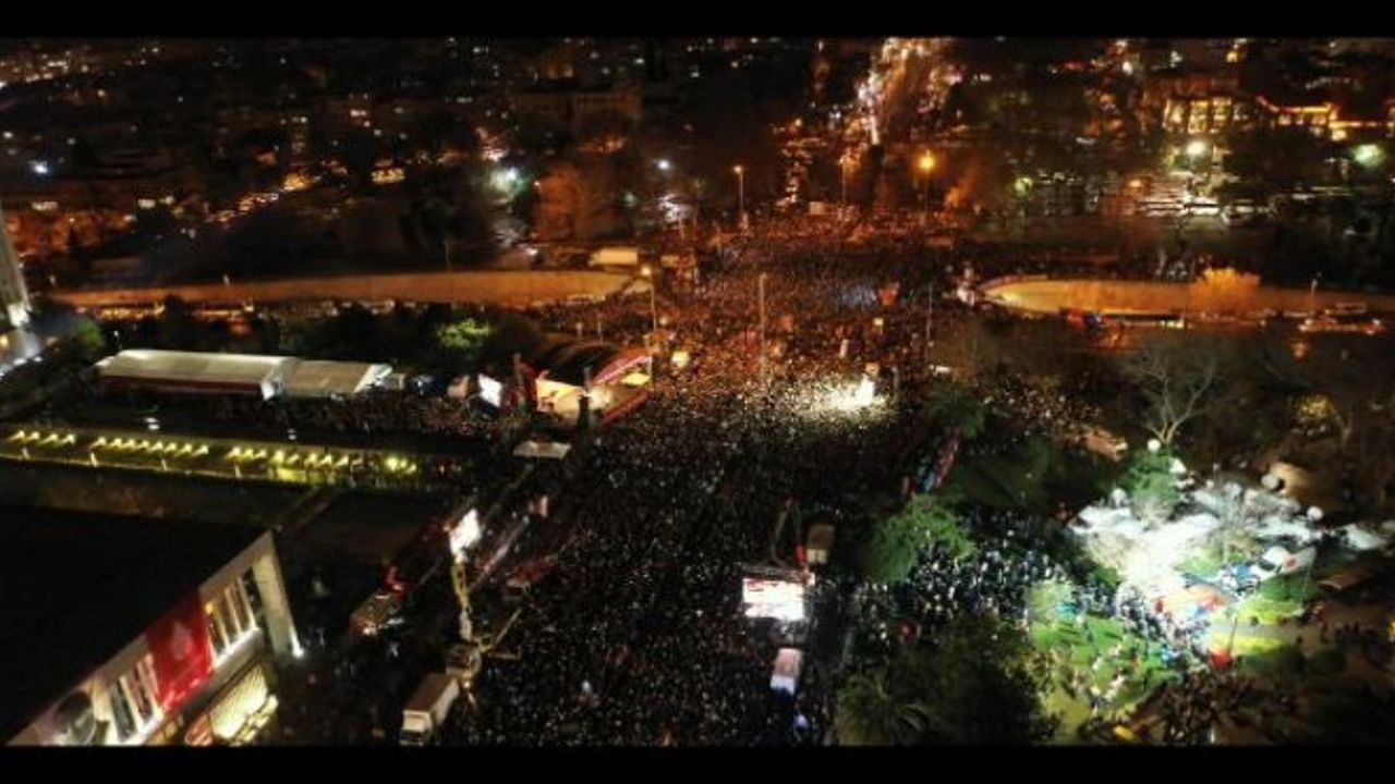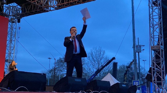 - Gençler diyor ki; 'Yaşasın hürriyet, kahrolsun istibdat.' İşte bu sese kulaklarını kapasalar da size, bize terörist deseler de haksız yere Ekrem kardeşimi yargılasalar da cezalandırsalar da bu irade, ses, yürek, cesaret, iyilik, bu demokrasi aşkı, bu sandıkta verilecek cezanın ortaya konduğu irade gösteriyor ki artık 16 milyon İstanbullunun ortaya konduğu irade gösteriyor ki artık 16 milyon İstanbullunun dışında 85 milyon Türkiye'nin de senin yanında olduğunu burada Saraçhane'den görüyoruz.