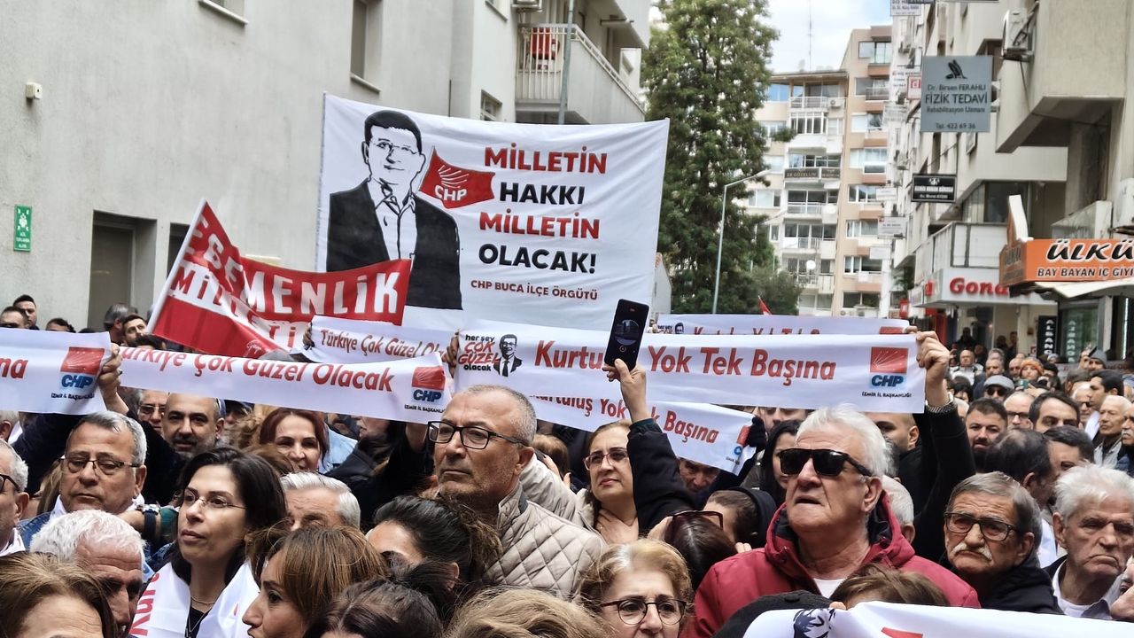 Diğer yandan İzmir Büyükşehir Belediyesi'nde örgütlü olan Genel-İş ve Tüm Bel Sen üyeleri Kültürpark’ta toplanarak CHP İzmir İl Binası'nın önüne yürüyüş yaptı. Eyleme ayrıca DEVA, DEM Parti, Zafer Partisi, EMEP, TİP, DİSK, KESK, TMMOB, İzmir Barosu, Tabip Odası, EHP, Halkevleri, Atatürkçü Düşünce Derneği, DEM Parti İzmir Milletvekili İbrahim Akın ve çeşitli sivil toplum örgütleri de katılarak destek verdi.