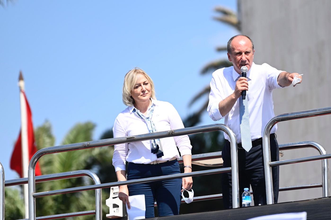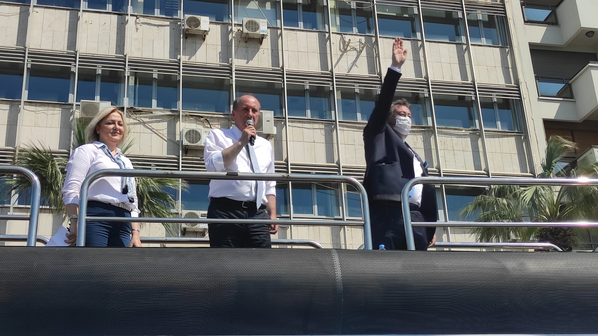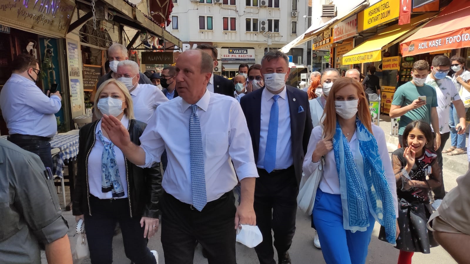 Ziyaretin ardından İnce ve beraberindeki grup il binasının olduğu Cumhuriyet Meydanı'na doğru harekete geçti. Alana gelir gelmez vatandaşları maske ve mesafe konusunda uyaran İnce, AK Parti'nin kongrelerine gönderme yaparak 'Lebalep kongre olmasın' dedi.