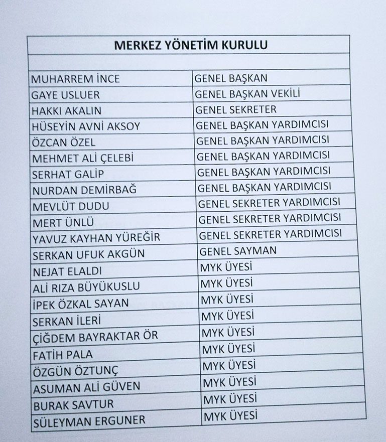 Merkez Yönetim Kurulu Üyeleri: Neşet Elaldı, Ali Rıza Büyükuslu, İpek Özkan Sayan, Serkan İleri, Çiğdem Bayraktar Ör, Fatih Pala, Özgün Öztunç, Asuman Ali Güven, Burak Savtur, Süleyman Erguner