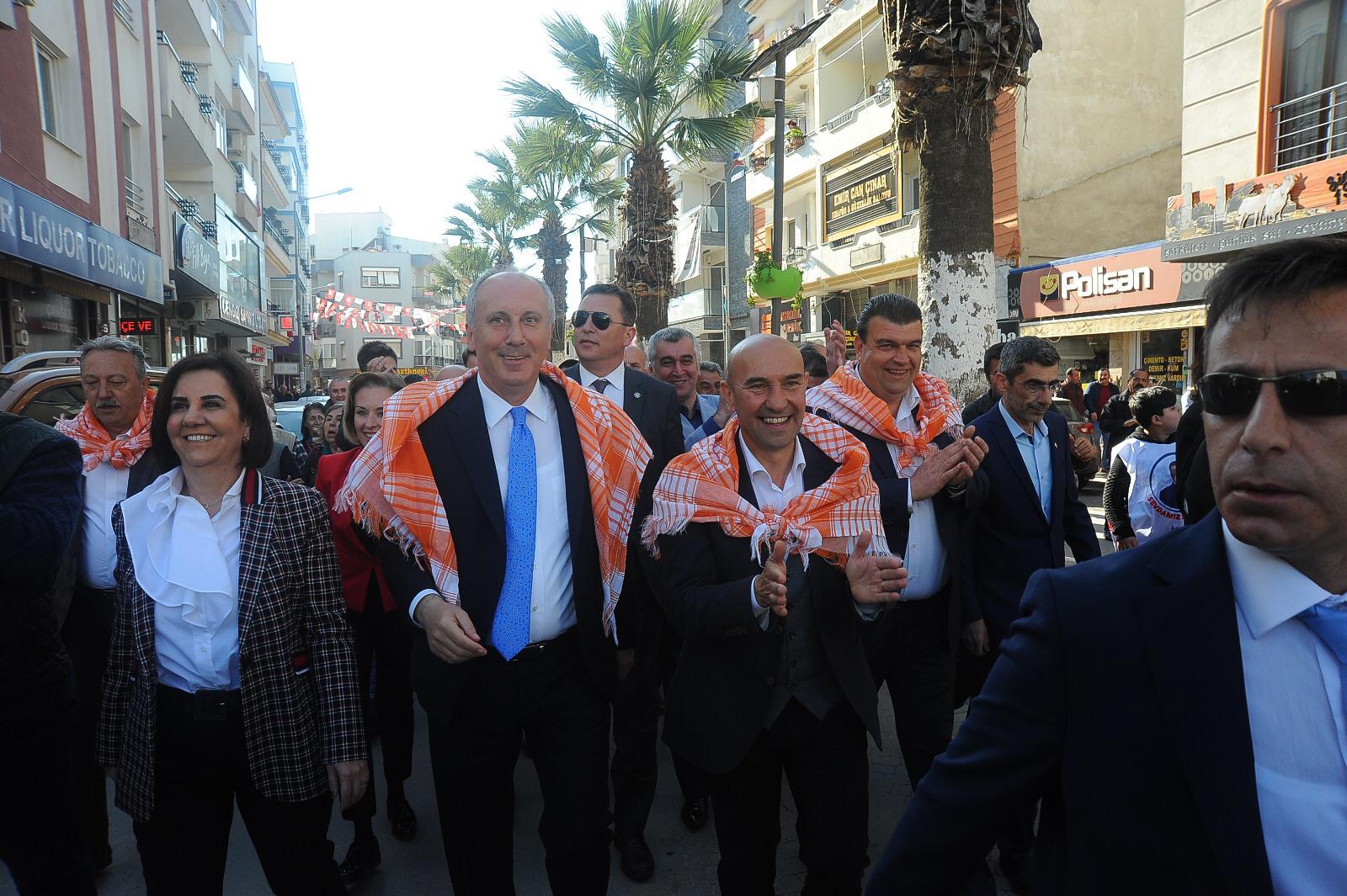 CHP'li İnce Seferihisar Cumhuriyet Meydanı'nda vatandaşlara seslendi. Millet İttifakı'nın İzmir Büyükşehir Belediye Başkan Adayı CHP'li Tunç Soyer ve Seferihisar Belediye Başkan Adayı İsmail Yetişkin tarafından karşılanan İnce'yi milletvekilleri ve partililer de yalnız bırakmadı.