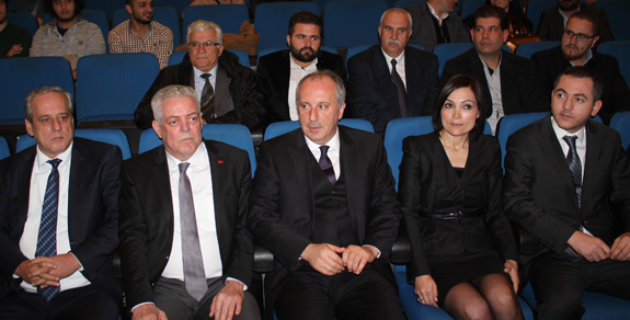 Söze Erdal İnönü'den bir anekdot anlatarak başlayan İnce, 'Bugün bu ülkede cumhuriyetçiler, Atatürkçüler, sosyal demokratlar cumhuriyetin geleceğiyle ilgili kaygı duyuyorlarsa, bunu Erdal İnönü bunu çok güzel özetlemişti; İnönü bir gün yanındakilerle lokantaya yemek için oturmuş garson İnönü'ye ne yersiniz efendim demiş, İnönü de, biz birazdan birbirimizi yiyeceğiz sen başkalarıyla ilgilen demiş. İşte cumhuriyetçiler birbirini yediği için ortalık bugün cumhuriyet düşmanlarına kaldı. Bu toplantıda Atatürk'ten günümüze eğitim meselesini konuşacağız. Herkesi ilgilendiren bir konu... Zaman zaman siyasete de kayabilir ama temel aldığımız konu eğitimdir' ifadelerini kullandı.