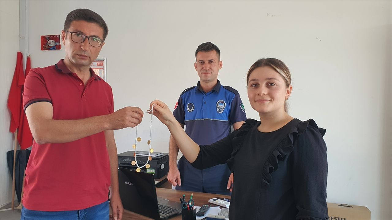 Alınan bilgiye göre, ilçede yaşayan Fatma Bostan, Gençlik Merkezi önünde 9 çeyrek altın buldu.