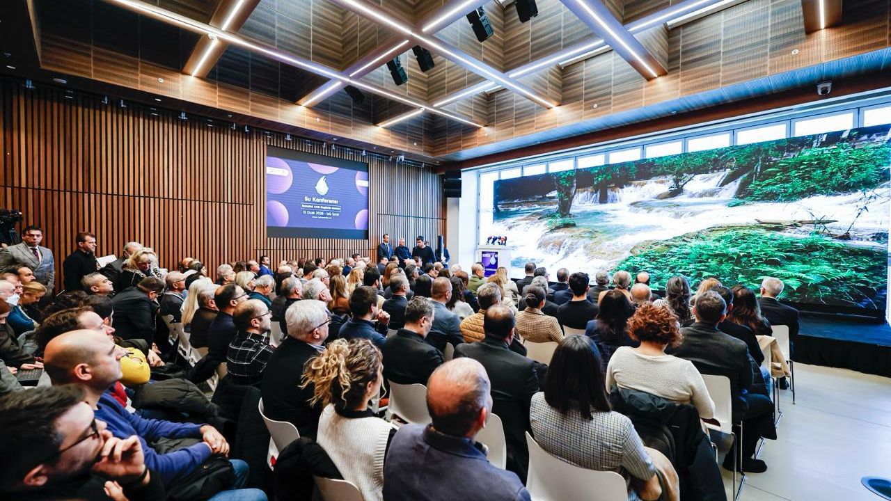 Konuyla ilgili konuşmak üzere sahneye çıkan İzmir Büyükşehir Belediye Başkanı Cemil Tugay, su konulu hazırladığı slayt gösterisini katılımcılara sundu.