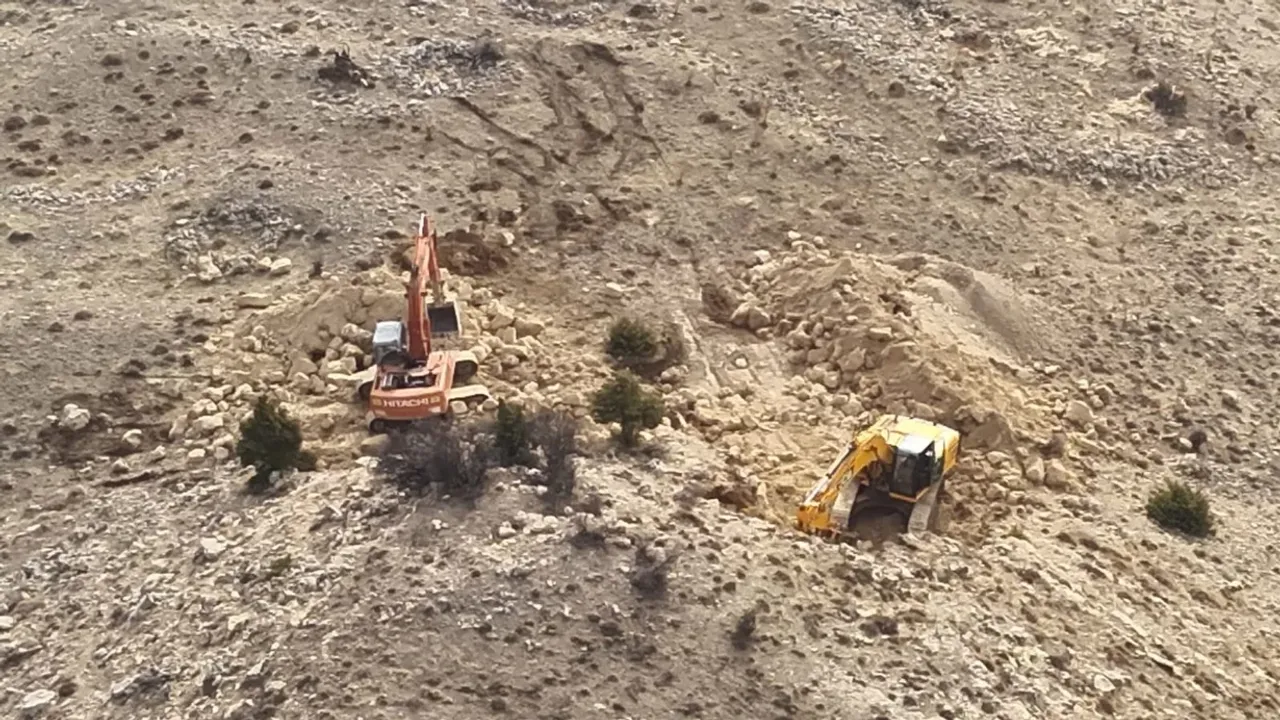 Karaman İl Jandarma Komutanlığı ekipleri, Güldere köyünde define aramak için iş makinesiyle kazı yapıldığı bilgisini aldı. Ekipler, 'Anadolu Mirası' operasyonları kapsamında belirtilen bölgede hem karadan hem de dronla havadan çalışma başlattı. Çalışma sonucu 2 adet iş makinesiyle kazı yapan M.T., M.D., F.T., M.M.S., M.A., K.G., İ.T., A.K., A.Ö., S.U., E.G., M.A., Ö.Ö. ve R.K.'yi suçüstü yakaladı. Kazıda kullanılan 2 iş makinesi, 1 dedektör, 1 alan tarama cihazı ve çeşitli kazı malzemelerine el konuldu.