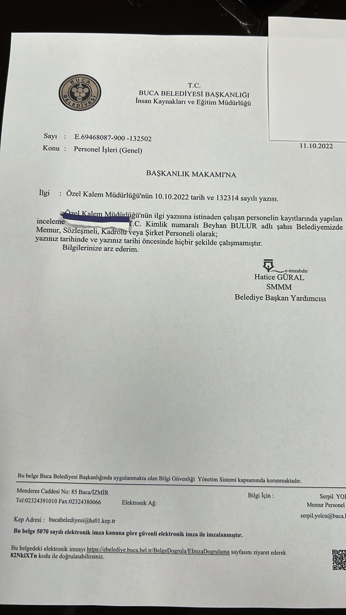 EGEDESONSÖZ- Bazı yayın kuruluşlarında CHP'li Tuncay Özkan'ın eşinin halasının Buca Belediyesi'nde işe alındığı yönünde iddianın ortaya atılmasının ardından konunun tarafı olan Özkan iddialara yanıt vermişti. Özkan, Buca Belediyesi İnsan Kaynakları ve Eğitim Müdürlüğü'nün başkanlık makamına yazdığı yazıyı paylaşarak haberi yalanlamış ve haberi yapan şahıs hakkında hukuki girişimlerde bulunacağını duyurmuştu.