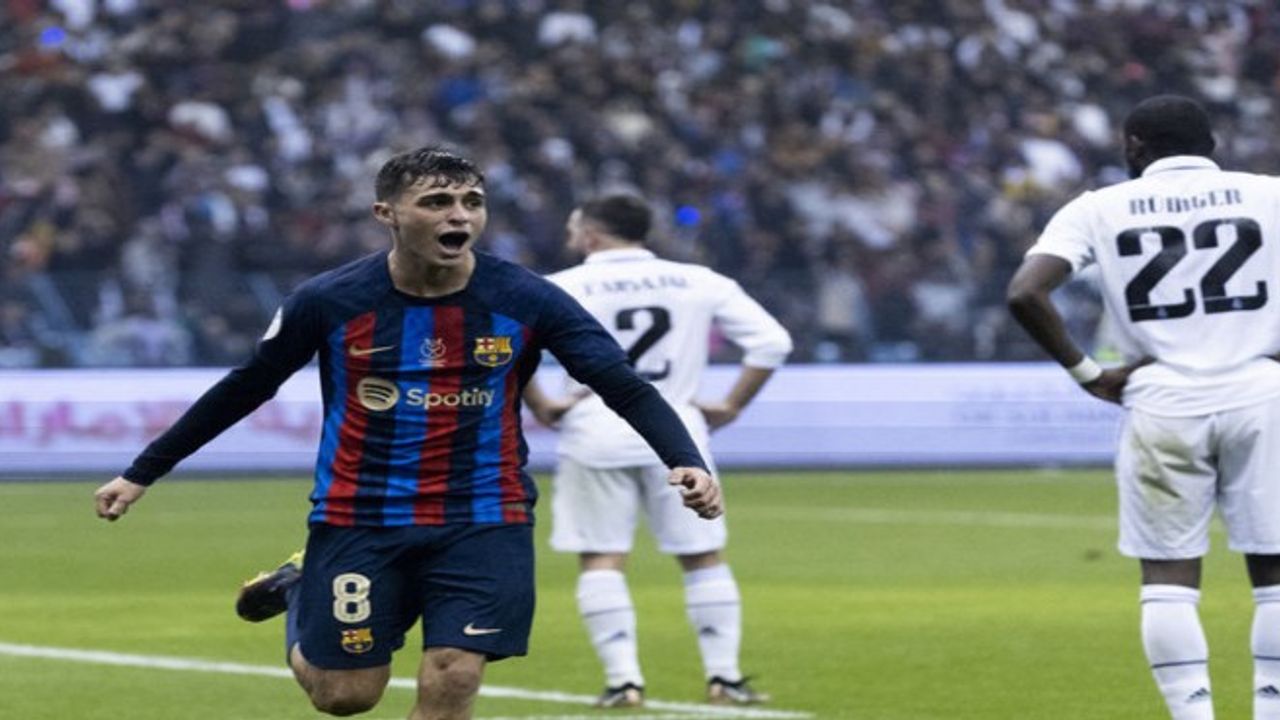 Suudi Arabistan'ın başkenti Riyad'daki Kral Fahd Stadyumu'nda oynanan karşılaşmanın ilk yarısını Barcelona, 33. dakikada Gavi ve 45. dakikada Robert Lewandowski'nin golleriyle 2-0 önde kapattı.