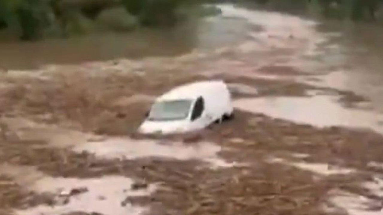 İspanya'nın Aragon Özerk Bölgesi’ne bağlı Zaragoza ilinin Tarazona kasabasında etkili olan şiddetli yağış sele yol açtı.