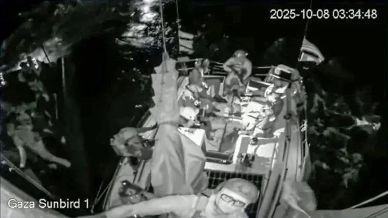 İsrail tarafından uluslararası sularda, Gazze’ye insani yardım götürmek üzere yola çıkan Özgürlük Filosu'nda yer alan Vicdan Gemisi’ne düzenlenen saldırıda alıkonulan aktivistler tahliye ediliyor.