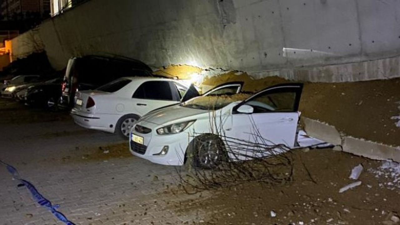 Çapanoğlu Mahallesi Aynalı Körük Sokak'ta Ravza Apartmanı'nın istinat duvarı park halindeki 11 aracın üzerine çöktü.