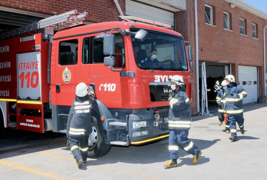 Eskişehir Büyükşehir Belediyesi İtfaiye Daire Başkanlığında staj yapan Kısmet Boran, Melisa Yavuz ve Muhibe Baytaroğlu, her gün gerçekleştirilen tatbikatlarla yangınlara müdahale için hazırlanıyor.