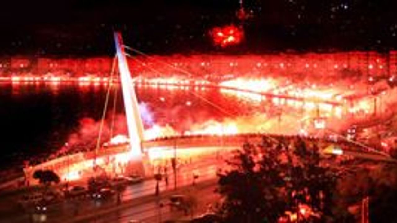 Sarı-kırmızılı yelkenlerle denizde müthiş görüntüler oluştu. Kulübün kuruluş günü olan 14 Haziran'da yani bugün ise coşku tavan yapacak. İzmir Türk Dünyası Dans ve Müzik Topluluğu'nun gösterileri ve Sedat Yüce konseriyle renklenecek gecede taraftarlar klasikleşen meşale şovuyla Güzelyalı'yı karnaval yerine çevirecek. Mektupçu Durağı'ndan Üçkuyular İskele arasındaki sahil kanadına dizilecek taraftarlar bu gece 22.00'de aynı anda deniz ortasından verilecek işaretle yaklaşık 10 bin meşale yakarak rekor deneyecek. Şimdiye kadar yapılan en uzun meşale şovuna hazırlanan Göztepe'nin iki günlük festivaline Kültür ve Turizm Bakanlığı ve Konak Belediyesi destek veriyor.