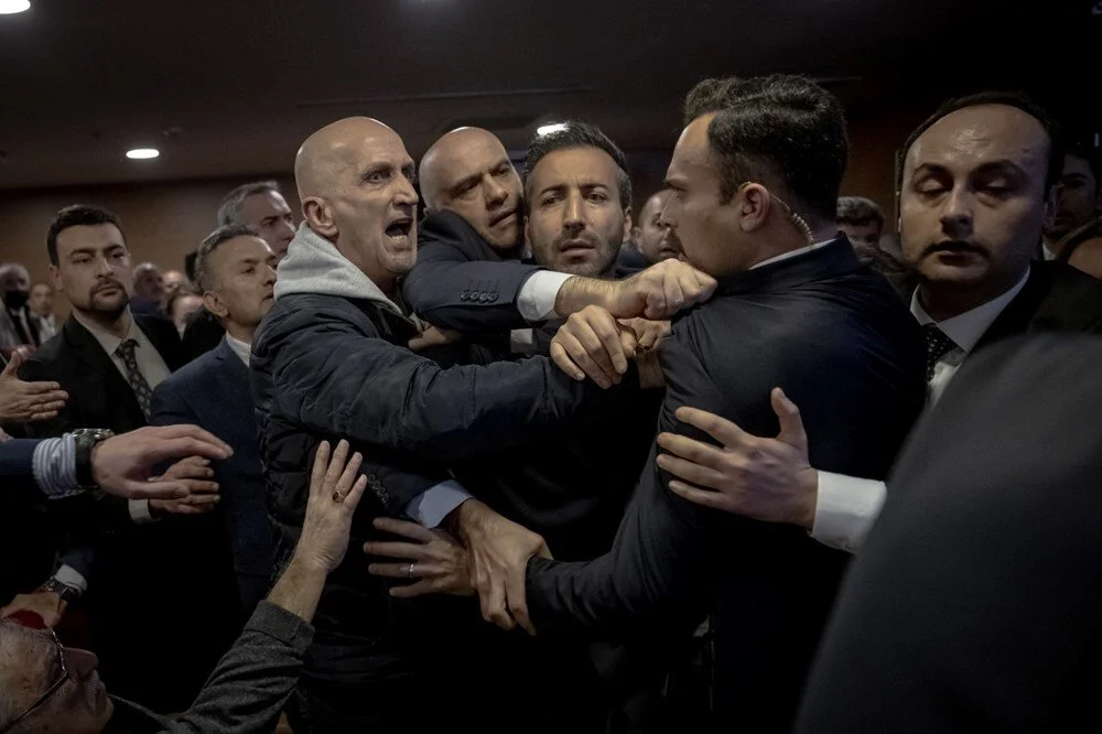 Diğer partilerin araya girmesiyle grup salondan çıkarıldı, aday tanıtım toplantısı devam etti.