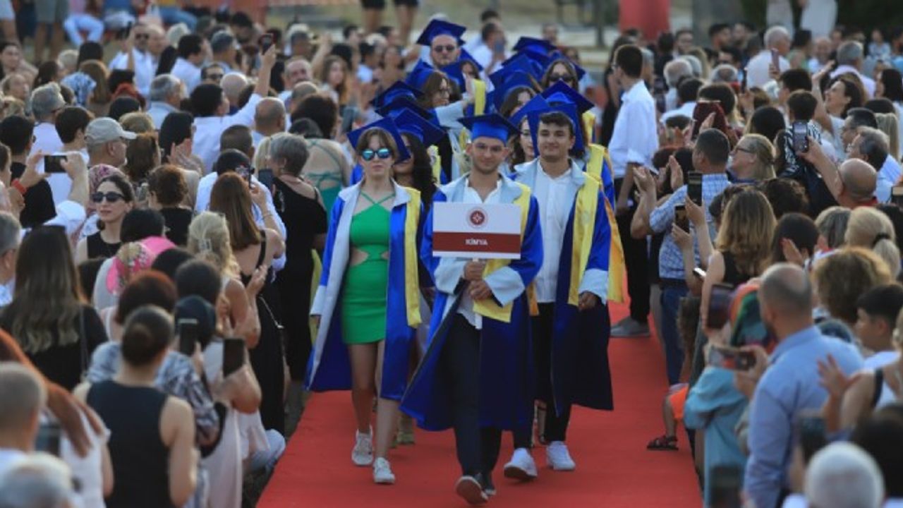 Tören sonunda tüm mezunlar ışık gösterisi ve müzik eşliğinde kep atarak üniversitenin bitişini kutladı.