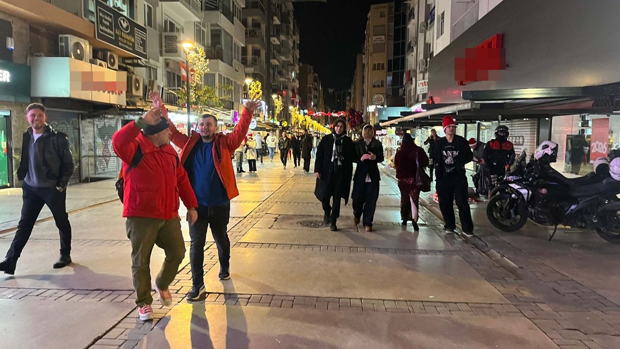 İzmir’de vatandaşlar, işlek cadde ve sokaklardaki kutlamalarla yeni yıla girdi. İşletme ve restoranlarda da yılbaşı kutlamaları saat 00.00'ı göstermesinin ardından devam ederken, emniyet güçleri kentin huzur ve güvenliğini sağlamak amacıyla geniş kapsamlı denetimler yapmaya devam ediyor. (DHA)
