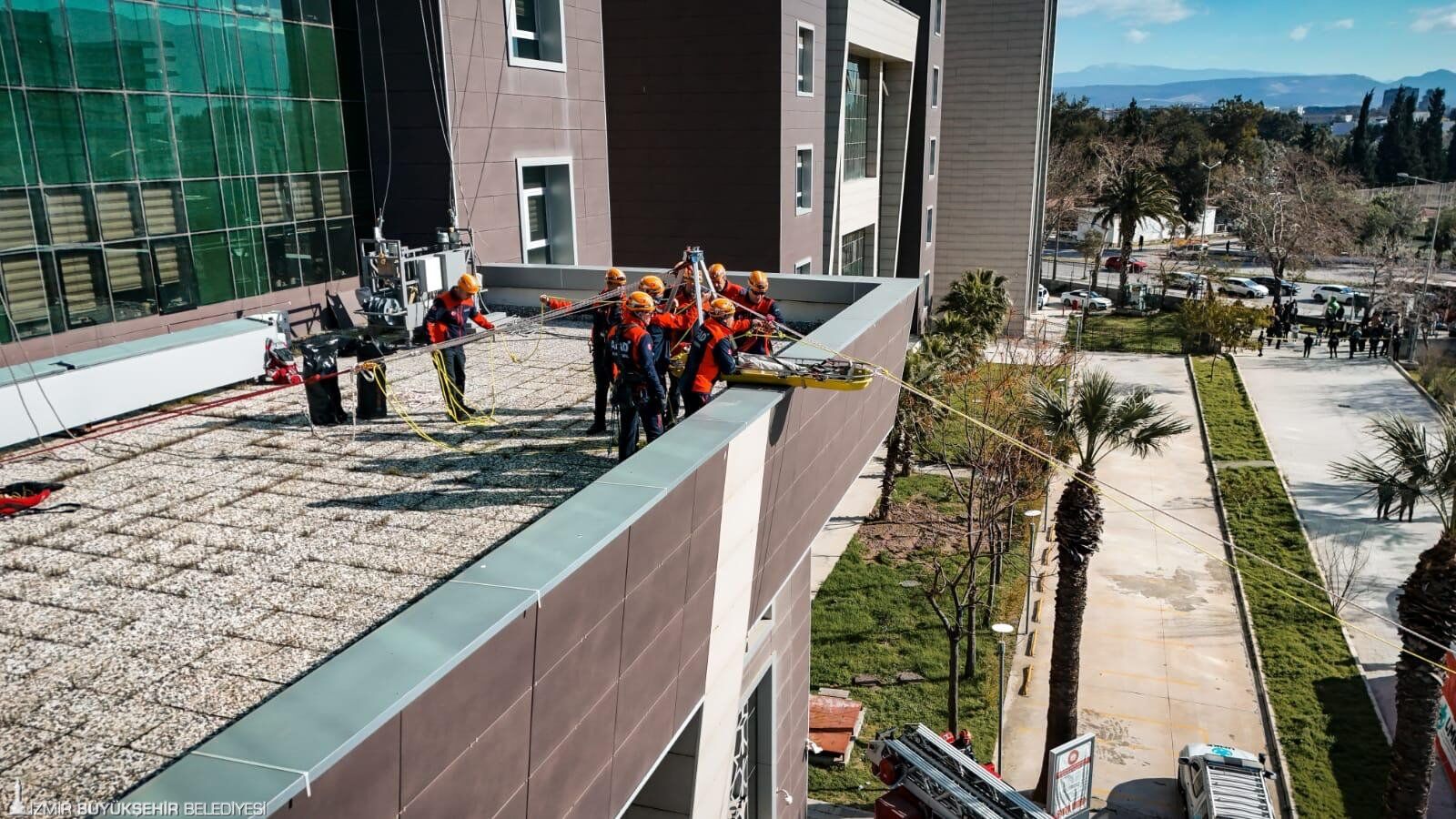 Ölçümlerin ardından bina içerisinde mahsur kaldığı belirlenen personelin itfaiye ekipleri tarafından tahliyesine geçildi. Ekipler, üst katlarda mahsur kalan vatandaşları merdivenli araçla güvenli şekilde aşağı indirdi. UMKE ekipleri tarafından olay yerinde sahra sağlık alanı kurulurken, yaralı olduğu varsayılan kişilere ilk müdahale yapıldı. Emniyet birimleri ise çevrede güvenlik önlemlerini sürdürerek senaryo kapsamında şüpheli şahısların yakalanmasına yönelik çalışma gerçekleştirdi