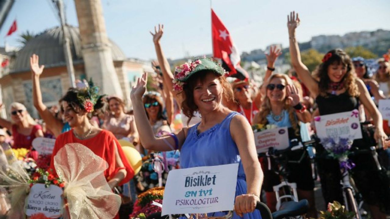 İzmir caddelerinde 'süslü' tur: Yüzlerce kadın pedal çevirdi