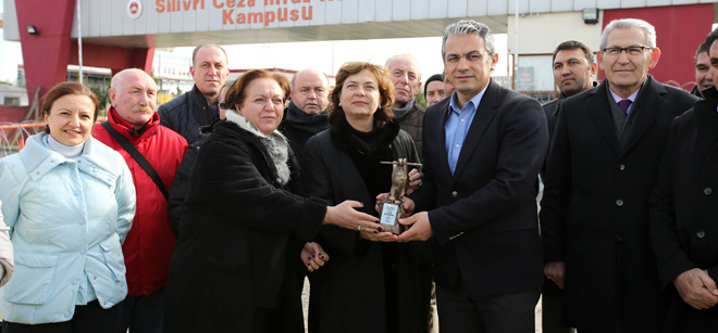 MİT TIR'ları haberi nedeniyle parmaklıklar ardına gönderilen Can Dündar'a destek olmak ve 'Basın Özgürlüğü Ödülü'nü ulaştırmak için yola çıkan Karşıyaka Belediyesi ve İGC heyeti, bugün Silivri Ceza İnfaz Kurumu'na gitti. Cesur gazetecinin ödülü, Karşıyaka Belediye Başkanı Hüseyin Mutlu Akpınar ve İGC Başkanı Misket Dikmen tarafından, eşi Dilek Dündar'a takdim edildi. Can Dündar da avukatı aracılığıyla teşekkür mesajı gönderdi.
