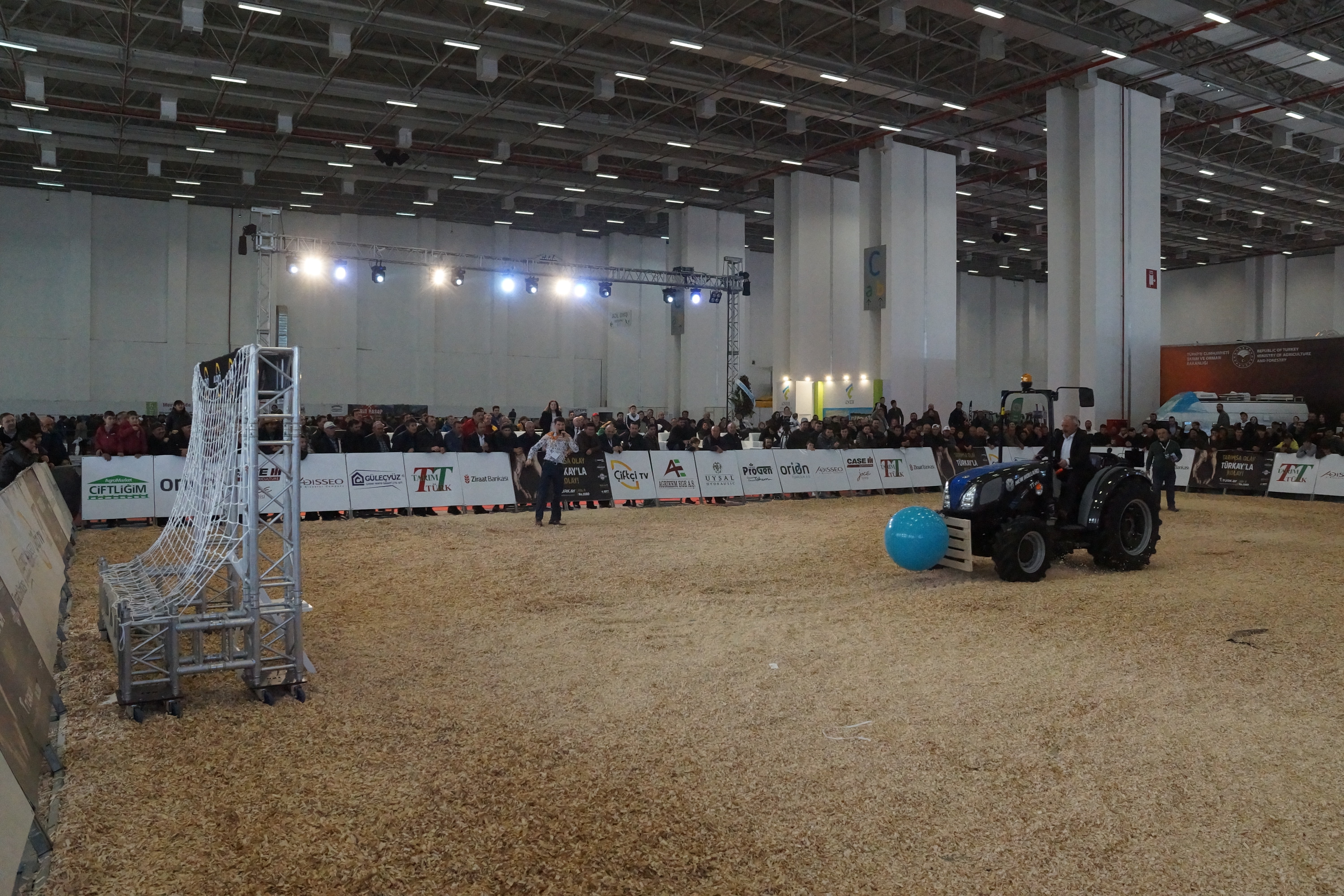 Eğlenceli aktivitelerin de düzenlendiği fuarda, 'traktör futbolu' büyük ilgi gördü. Oluşturulan futbol alanında katılımcılar, traktörün önüne monte edilen paletle, dev topu kaleye sokmaya çalıştı. Traktör sürücülerinin yakınları da tribünlerde, tezahüratlarda bulundu.