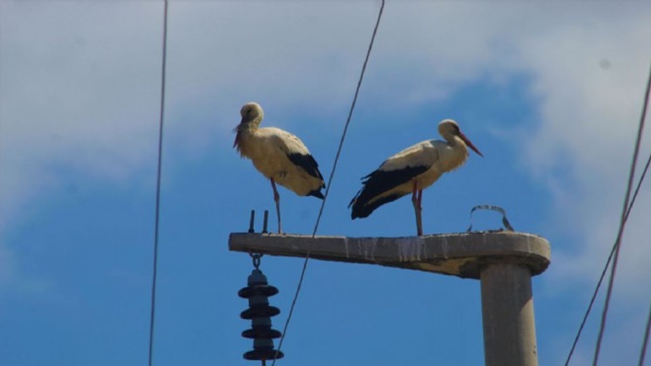 Ekosistemi Koruma ve Doğa Sevenler Derneği'ne ulaşan köylüler, bir çift leyleğin elektrik direğine yuva yapmaya çalıştığını ancak başarılı olamadığını ifade etti.