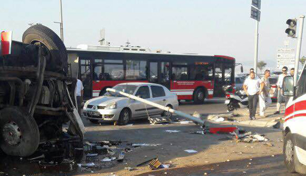 Kaza, bugün saat 19.30 sıralarında Levent Marina kavşağında meydana geldi. Narlıdere yönünden gelen 32 yaşındaki İsmail Aksoy yönetimindeki 35 PPU 16 plakalı alçı yüklü kamyon, sürücüsünün kontrolünden çıkıp trafik ışıklarında duran araçlara çarptı. Kazada, 1'i ağır, 10 kişi yaralandı.